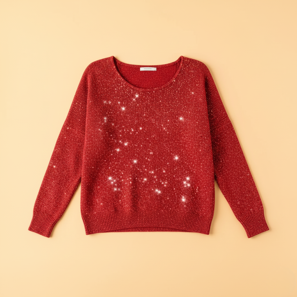 This sweater is made for women who want comfort with a touch of elegance. The cotton-polyester blend feels soft on the skin and is pleasant to wear throughout the day. The subtle printed sparkle adds light and warmth to the look, without feeling overstated.